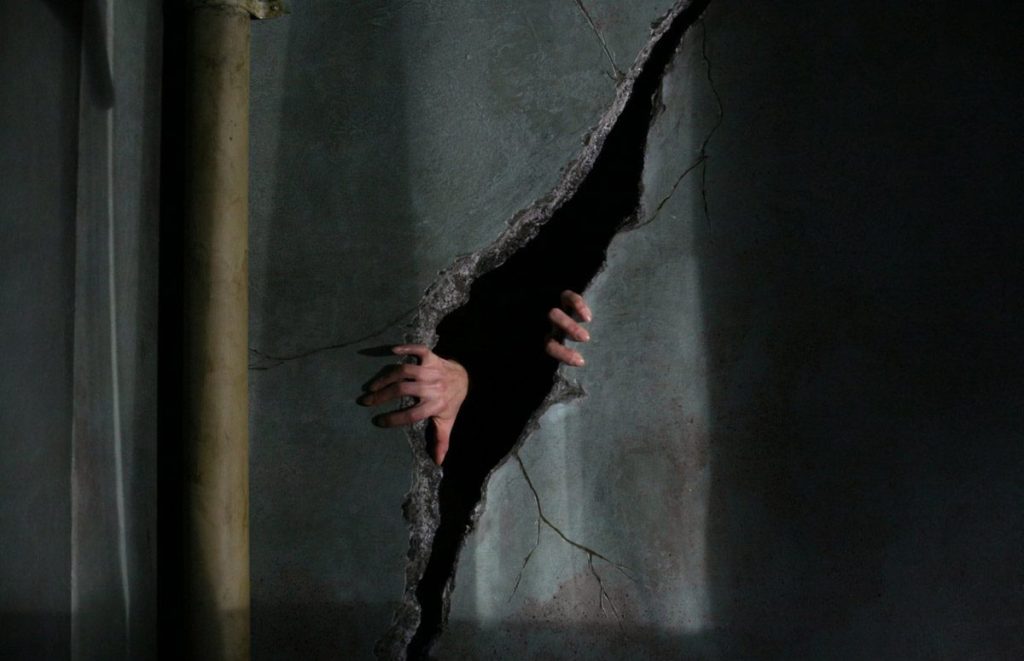 - La trace sur le mur laissé par l’esprit et le fait qu’il semble pouvoir en sortir comme dans Kaïro.