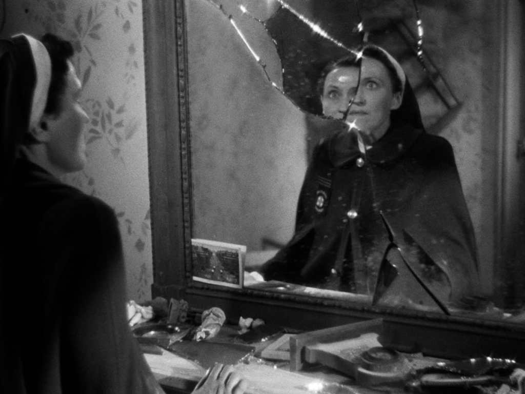 A travers ces références au cinéma d’outre-Rhin, il y a un gros travail sur le champ et le rythme, pour faire comprendre la psychologie à cet instant d’un ou de plusieurs personnages. A titre d’exemple, nous pouvons citer la scène de l’oraison funèbre où l’on commence par un plan large sur la foule regroupée avec le discours du sous-préfet dans le fond, où l’on voit au premier plan une femme récupérant une lettre du Corbeau puis la diffusant à d’autres. Le discours continu et l’on voit toujours la foule se distribuant la lettre. Des plans en contre-plongée de Marie Corbin, que tous pensent être le Corbeau, apparaissent avec le regard accusateur de la foule[2], l’accusant, alors qu’elle reste impassible malgré la gêne. A la fin du discours, la foule s’en prend à Marie Corbin et les divers plans de caméra servent à montrer l’émotion et la folie de la foule, ainsi que la panique de l’accusée. Seule la mère du défunt reste impassible dans sa douleur. Ce qui est intéressant, c’est que le discours officiel du sous-préfet semble sonner faux et est tourné en ridicule dans cette scène, les autorités étant montré comme incapable de mettre fin à la folie des lettres anonymes. Un exemple de désacralisation de l’autorité répété une scène plus loin où le prêtre, pensant le Corbeau arrêté, sonne la fin de la folie mais du plafond tombe lentement une lettre.