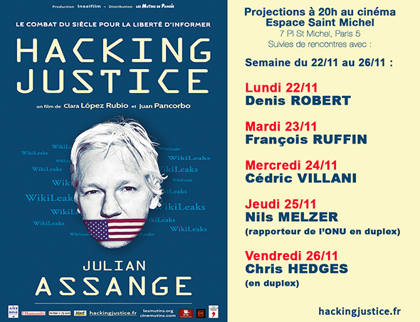 La raison est simple : c’est complètement à contre-courant. Et peu de gens veulent nager à contre-courant car ça nécessite plus d’efforts, plus de travail pour moins de recettes. Les idées progressistes et la curiosité ne sont pas un créneau du tout porteur de notre temps ! Et il semble aussi qu’il y ait moins de professionnels de notre secteur qui aient des convictions à défendre, soit parce que ce n’est pas leur culture soit par ce qu’ils ont renoncé. Mais on n’a pas le choix, c’est notre histoire, on sait d’où on vient, ce qui nous anime et on ne pourrait pas consacrer nos vies et notre énergie à faire ce qui ne nous intéresse pas, servir les plats, « faire pleuvoir où c’est déjà mouillé » comme dit mon camarade Daniel Mermet. On espère qu’on restera encore assez nombreux dans ce qu’on considère de plus en plus comme un « refuge » mais qui est aussi parfois l’avant-garde comme, par exemple, le film que nous sortons au cinéma actuellement HACKING JUSTICE – JULIAN ASSANGE, avec peu de salles mais un succès fou, malgré le black-out de la plupart de la presse (sauf L’Humanité, Là-bas si j’y suis, Blast.info et quelques autres journaux indépendants). Et en disant cela, j’ai bien conscience d’aggraver la situation. Plus on se plaint de la presse, plus elle nous marginalise et ça se fait plus du tout dans la critique des idées désormais mais par le silence.